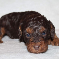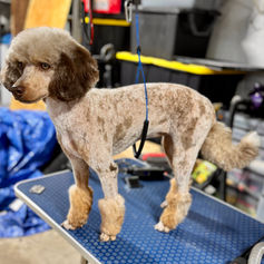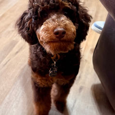 Rye is an AKC Registered Brown Phantom Poodle, weighting in at 23 lbs and 17" tall.