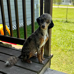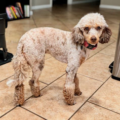 Maple is an AKC Registered Brown Phantom Merle Poodle, weighting in at 24 lbs and 17" tall.